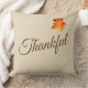 Cet oreiller de lancer est montré en couleur naturelle avec un imprimé de Thanksgiving Thankful avec un joli accent de feuille d'automne. Customisez cet objet ou achetez tel que conçu.