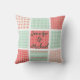 Coussin de Noël mignon en flocons de neige rouge et vert pastel et cloches Jingle sur le devant. Coordonner patchwork, ajouter votre nom de famille, votre propre message ou laisser vide. Découvrez tous nos décors de vacances dans notre boutique Zazzle !
