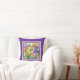 Joli coussin fleuri, iris peint encadré de rose/vert, sur un coussin violet foncé.