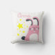 Coussin de bébé personnalisable avec un mignon lapin rose et des étoiles jaunes. Vous pouvez facilement customiser pour ajouter le nom de votre petite fille.