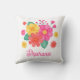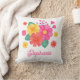 Customisez ce joli coussin avec votre nom. Il présente un design floral moderne original avec des fleurs roses, oranges et jaunes.
