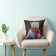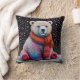 Ours polaire assis sur un fond sombre et étoilé. L'ours est représenté dans un motif coloré en style pointillé qui lui donne une apparence ludique et fantaisiste. Il porte une écharpe orange vif qui ajoute de la chaleur à la scène. Le sol enneigé sous l'ours est également illustré avec une texture en pointillés, et les étoiles environnantes et les points colorés créent une atmosphère festive et hivernale. L'effet global est lumineux et joyeux, mêlant des éléments de la nature à l'expression artistique.