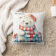 Coussin Joli ours polaire de Noël en aquarelle blanche
