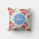Un joli carré floral de pavot rouge lance l'oreiller avec de jolis papillons bleus et oranges. Personnalisez en ajoutant votre nom et votre monogramme à l'insigne d'octogone bleu garçon arrondi. Cela fait partie de la collection de monogrammes à papillon bleu floral du Poppy.