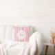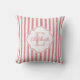 Ajoutez de la mode et du flair à votre décor de maison avec ce joli rose et blanc rayures peintes en détresse jettent l'oreiller. Personnalisez ce design rose mignon et élégant en ajoutant le nom et le monogramme initial de la jeune femme à la mode.