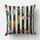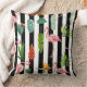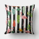 Coussin Jolie bande blanche noire avec Flamant rose Cactus