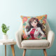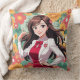Jolie dame Anime avec arrière - plan Floral imprimé sur un oreiller de 20 po x 20 po.