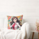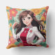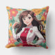 Coussin Jolie dame Anime avec Arrière - plan Floral imprim