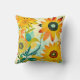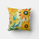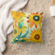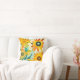 Des fleurs d'art folklorique jaunes et turquoise jettent un oreiller.