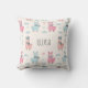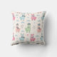 Ce mignon oreiller personnalisé pour enfants présente des lamas de dessins animés aux couleurs pastel douces entourées d'étoiles, de coeurs, de nuages et de croquis de cactus, le tout contre un arrière - plan crémeux blanc cassé.