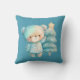 Coussin avec une adorable illustration. Un ours douillet aux étoiles et aux étincelles dans sa fourrure. À côté d'un sapin de Noël. Couleur pastel bleu-vert. Whimsical et mignon.