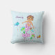 Amusante et colorée, la sirène des enfants jette l'oreiller avec une jolie sirène dans sa tenue de pois nageant avec des poissons colorés parmi les fleurs et les bulles d'eau ; tellement mignon. Adorable pour une garderie ou une chambre pour enfants; un coup de coeur pour les petites filles.