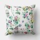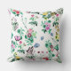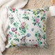 Joli coussin jeté orné de papillons et de fleurs, rose, violet, vert et jaune.
