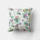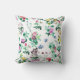 Joli coussin décoratif orné de papillons et de fleurs, rose, violet, vert et jaune.