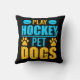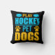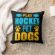 Jouer de l'oreiller grand pour les joueurs de hockey masculins et féminins, comprend des rondelles de hockey, un bâton de hockey, des empreintes de pattes de chien et le texte dit Jouer des chiens de compagnie de hockey!