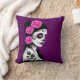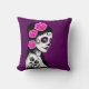 Coussin Jour de la fille morte de crâne de sucre - pourpre