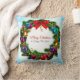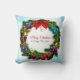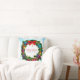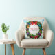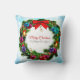 Coussin de vacances amusant avec une couronne de Noël décorée d'ornements, de cloches et de sucres de canne et "Joyeux Noël et Bonne Année".