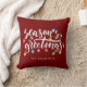Lumières de Noël Joyeuses Fêtes Nom Oreiller à lancer rouge. Décorez votre maison pendant les vacances de Noël et accueillez les invités avec BONNES FÊTES sur cet oreiller de lancer personnalisé avec typographie de script de calligraphie moderne accentuée avec des lumières de Noël colorées brillantes dans votre choix de texte, titre graphique et couleur arrière - plan (montré en blanc sur rouge). ASSISTANCE : Pour obtenir de l'aide sur la modification de la conception, contactez le concepteur AVANT DE COMMANDER via l'onglet MESSAGE Conversation Zazzle ci-dessous ou envoyez un courriel à makeitaboutyoustore@gmail.com.