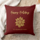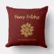 Un élégant poinsettia or et parties scintillant rouge fleur Happy Holidays Script Holiday jettent oreiller. Ce coussin de classe est entièrement personnalisable et simple à personnaliser en ajoutant simplement votre nom. Idéal pour les fêtes de Noël ou ajouter un décor de vacances à votre maison. Parfait pour un cadeau personnalisé spécial pour les amis et la famille pour les vacances.