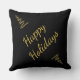 Coussin de luxe Happy Holidays bling. Thème - Gold noir étoiles scintillant Noël scintillant décoration moderne accessoire cadeau magnifique élégant réversible