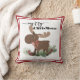 Cet orignal est adorable avec un ruban rouge attaché autour du cou. Il se tient au milieu des épais de pin et des baies. Le texte ci-dessus se lit "Merry ChrisMoose". L'envers du coussin est rouge et dit "joyeux" en blanc et il y a une double bordure blanche. Le coussin à deux côtés parfait pour votre décor de vacances cette saison. Les petits vont aussi adorer cette mignonne orignal !