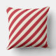 Le design coussin saisonnier présente un design élégant "Merry and Bright" avec un accent étoilé et un motif de rayures de sucre de canne cardinal rouge et doux blanc / ivoire clair.