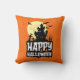 Happy Halloween design de texte illustration avec maison hantée, cimetière et chauves-souris décoration à pleine lune sur grunge orange arrière - plan