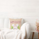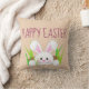 Ce lapin blanc moelleux regarde de son trou de lapin pour vous souhaiter une Pâques heureuse. Sur le dos du coussin il y a une vue complète, répétant le motif du lapin. La couleur arrière - plan, un beige doux, se customise.