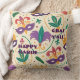 Laissez les bons moments rouler avec ce magnifique décor de maison Mardi Gras vert, violet et or ! Un coussin Mardi Gras aux couleurs festives des célébrations du mardi gras. Le design est unique et attrayant, avec des plumes, des masques et des perles sur fond de crème pâle. Le dos du coussin a un motif similaire. Vous pouvez apporter des modifications au texte "Happy Mardi Gras Y'All" avec le bouton de personnalisation. .