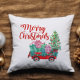 Coussin de Noël mignon et amusant avec une charrette rouge remplie de cadeaux et un sapin de Noël avec les mots "Joyeux Noël" sur le devant. Coordonner, ajouter votre nom de famille, votre propre message au dos ou laisser vide. Découvrez tous nos décors de vacances dans notre boutique Zazzle !