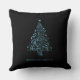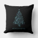Joyeux Noël Texte Arbre Étoiles Arrière - plan noir Métallic Bleu brillant Chic Coussin, vous pouvez changer le texte