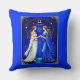 Coussin dans deux femmes éthérées représentant le signe zodiaque Gemini. Habillés d'élégantes robes blanches et bleues, ils se tiennent en miroir, tenant la main sous un ciel étoilé. Le symbole Gemini apparaît au-dessus d'eux évoquant l'harmonie céleste et la dualité.