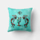 Éclairez votre maison avec cet Oreiller unique "Un d'un genre" au sud-ouest de Kokopelli Jetez! Il comprend deux Kokopelli sud-ouest jouant la Flûte et dansant autour d'un cactus sous le soleil sur un...Turquoise et Arrière - plan blanc! C'est un Art Design original de l'artiste Kerry Miller.