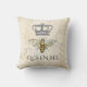 Cet oreiller vintage d'inspiration jetée présente une illustration d'une couronne royale et d'une abeille jaune sur un arrière - plan de nid d'abeille, ainsi que les mots "Queen Bee" qui peuvent être laissés est ou personnalisé. Conçu par un artiste mondialement connu ©Tim Coffey.