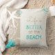 Belle illustration de l'étoile de mer blanche et du sable de plage + large bande couleur taupe + formes circulaires turquoises + arrière - plan d'ivoire sur Coussins personnalisés. Des coussins modernes et sucrés que vous pouvez customiser pour votre maison, maison de plage et/ou gardiens mariages. (Vous pouvez trouver les essentiels et les faveurs mariages correspondants dans ce magasin, le paradis nuptial. Contactez ujean4791@gmail.com pour un travail personnalisé et/ou la coordination de la papeterie mariage.))