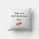 Ce coussin mignon présente une aquarelle de cerise rouge fantaisie avec des feuilles verts. Elégant script vintage dit "la vie est un bol de cerises," pour un design chic et simple rétro.