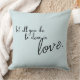 Coussin bleu clair simple, avec un devis de police écrit à la main, à l'avant comme à l'arrière. Citation : "Que Tout Ce Que Vous Faites Soit Fait Dans L'Amour". La lettre est en noir. Recherchez cette conception sur d'autres produits de Simple Living.