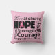 Coussin L'amour croient l'espoir typographique - cancer du