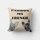 "Pardon My French" French Bulldog Coussin est un mignon oreiller décoratif qui pourrait être utilisé sur un canapé, une chaise ou un lit pour ajouter une touche spéciale à la chambre...qui sait peut-être que même votre frenchie voudra l'utiliser
