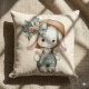Coussin Lapin Mignon en Salopette avec Chapeau de Paille e