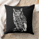 Coussin d'accent noir et blanc classique avec illustration détaillée du hibou.
