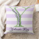 Coussin Lavande clair violet bandes blanches monogramme