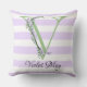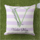 Coussin Lavande clair violet bandes blanches monogramme
