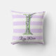 Coussin Lavande clair violet bandes blanches monogramme