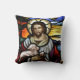 Coussin Le Bon Pasteur; Jésus sur le vitrail