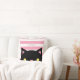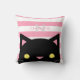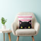 Carreau mignon superbe avec un chat noir scrutant sur vous devant un arrière - plan de larges rayures roses et blanches.