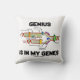 Montrez votre côté scientifique désagréable avec cet oreiller de lancer avec la réplication de l'ADN avec le dicton "Genius is In My Genes". Faites faire à tout le monde une double prise là où vous obtenez vos intelligences avec une dose d'attitude scientifique et éducative avec cet oreiller de lancer!