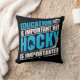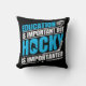 Drôle hockey thème lancer oreiller avec le texte bleu et blanc sur un arrière - plan noir lit l'éducation est important, mais le hockey est important!