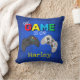 Cool et coussin coloré, que les joueurs vont aimer. Avec un arrière - plan de pixel bleu, deux contrôleurs de jeux vidéo, le titre "The Game is On!" et personnalisé avec leur nom.