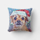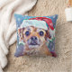 Le plus mignon chien de Noël jamais vu ! Lance la conception de l'oreiller. Un cadeau parfait pour une maman de chien. chapeau de Père Noël; grands yeux innocents; neige tombante. Scène de Noël qui réchauffe le coeur pour l'amoureux des chiens.